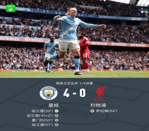 - 剑南春丨曼城40利物浦晋级足总杯4强,哈兰德戴帽,塞门约传射