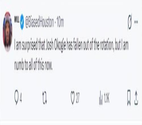 赛后休媒Will依旧不满乌度卡的用人调配,他表示:我很惊讶奥科吉居然被排除在轮换阵容之外,但如今我对这一切已经完全麻木了。